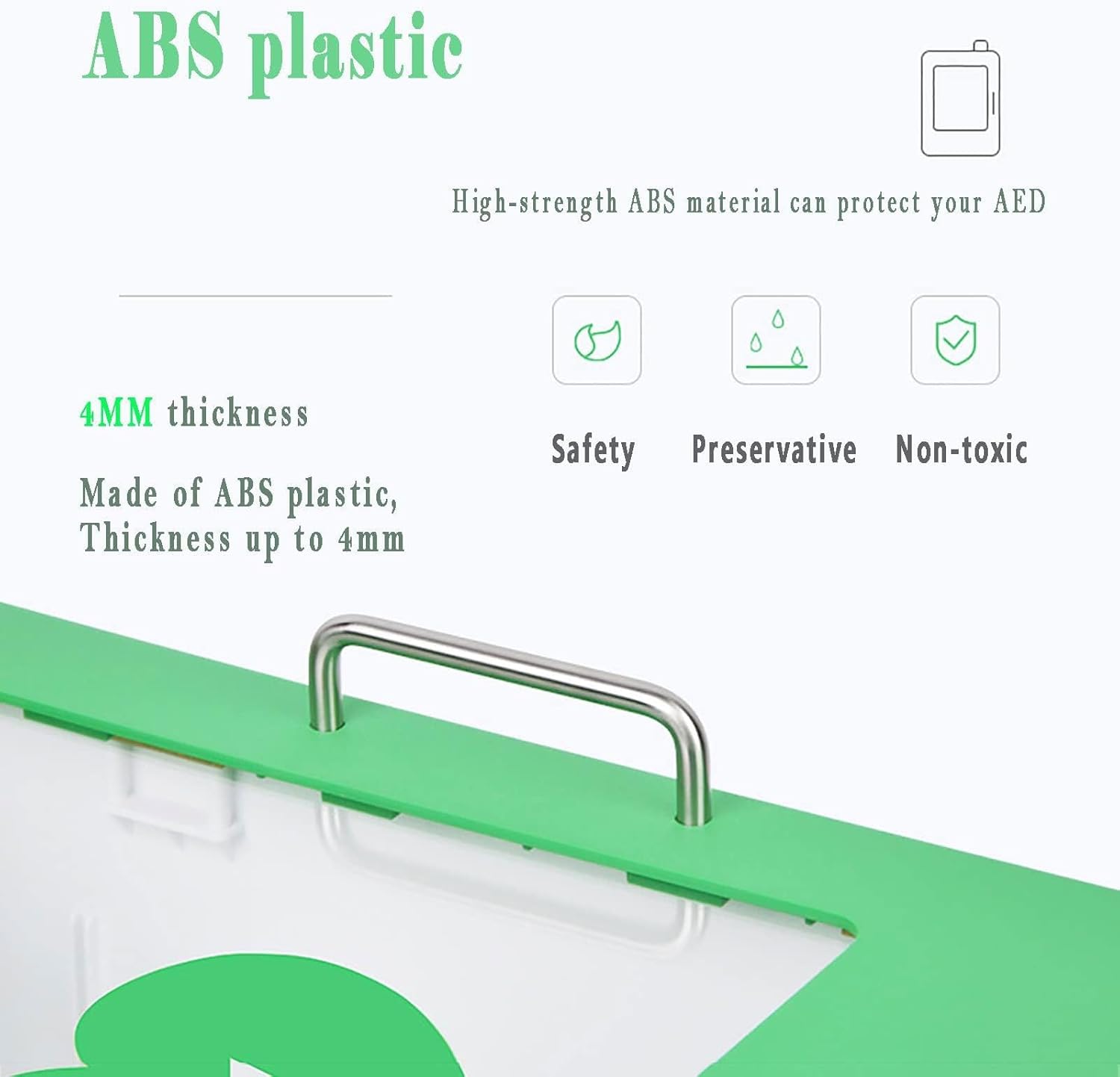 Equipped with an 80-decibel alarm, the cabinet alerts bystanders when opened, drawing attention to the emergency and deterring unauthorized access. The clear, impact-resistant PC/Acrylic window allows for easy device monitoring without opening the cabinet, ensuring readiness at all times.